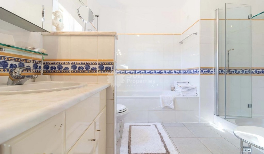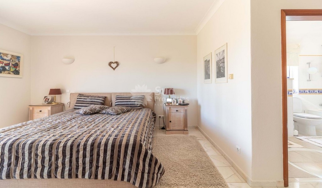 On the first floor we have a spacious master bedroom with ensuite bathroom and walk in closet. From the balcony, we have privileged views of the golf course.